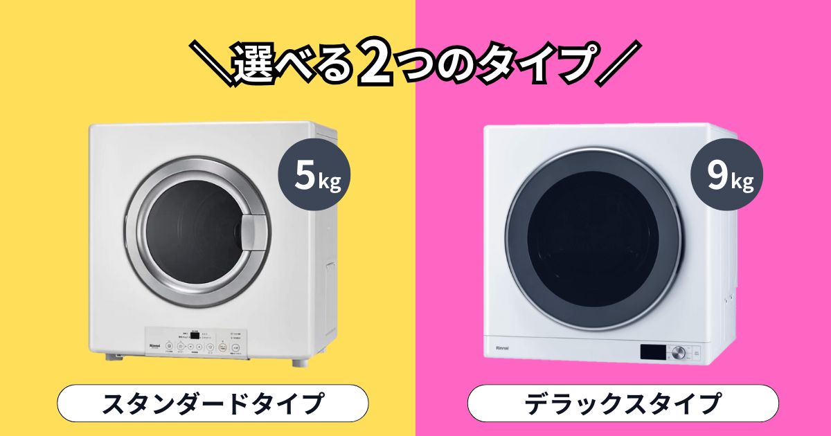 リースプランをご利用の方には、まず「スタンダードタイプ5kg」と「デラックスタイプ9kg」の2種類から機種をお選びいただきます。それぞれ特徴がありますので、ご家庭の生活スタイルに合った機能性とサイズをお選びください。